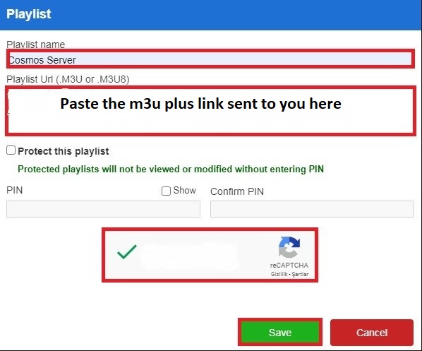 Step 6= -Type “Cosmos Server” in the Playlist name section