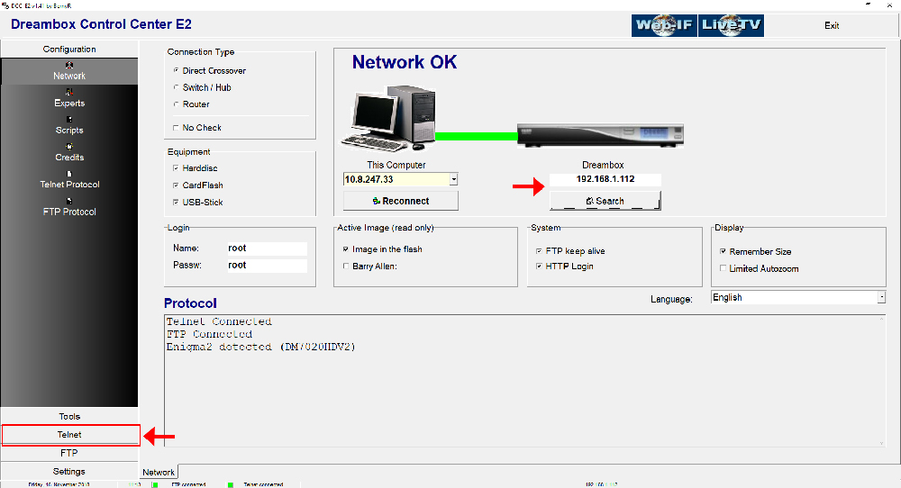 Step 1: Start by downloading the necessary items. DCC_E2 (Dreambox Control Center for Enigma2). You must connect to your Enigma box using Dreambox Control Center E2 and click on “Telenet“. But first, you must find the IP address of your enigma2 box. We will discuss this further ahead in this article.