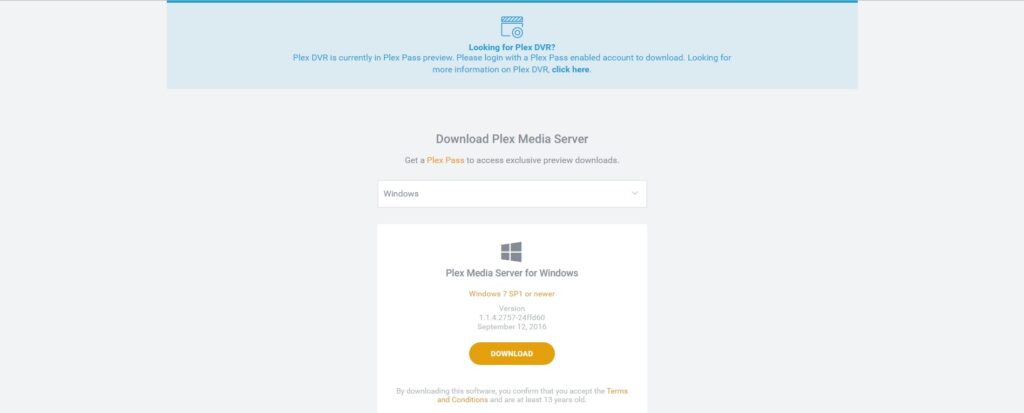 Step 3: After creating your account, go to the “Downloads” section and look for “Plex Media Server” and download it.