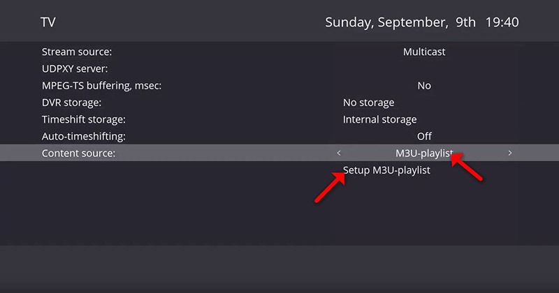 Step 2= Change the content source to “M3U-playlist” and click on “Set up M3U-playlist”.